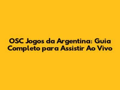 OSC Jogos Da Argentina: Como Assistir Ao Vivo