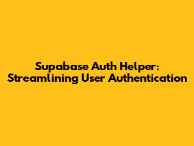 Supabase Auth Helper: Easy Authentication Guide
