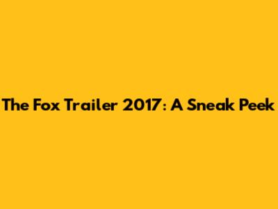 The Fox Trailer 2017: A Sneak Peek