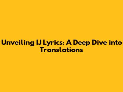 Unveiling IJ Lyrics: A Deep Dive Into Translations